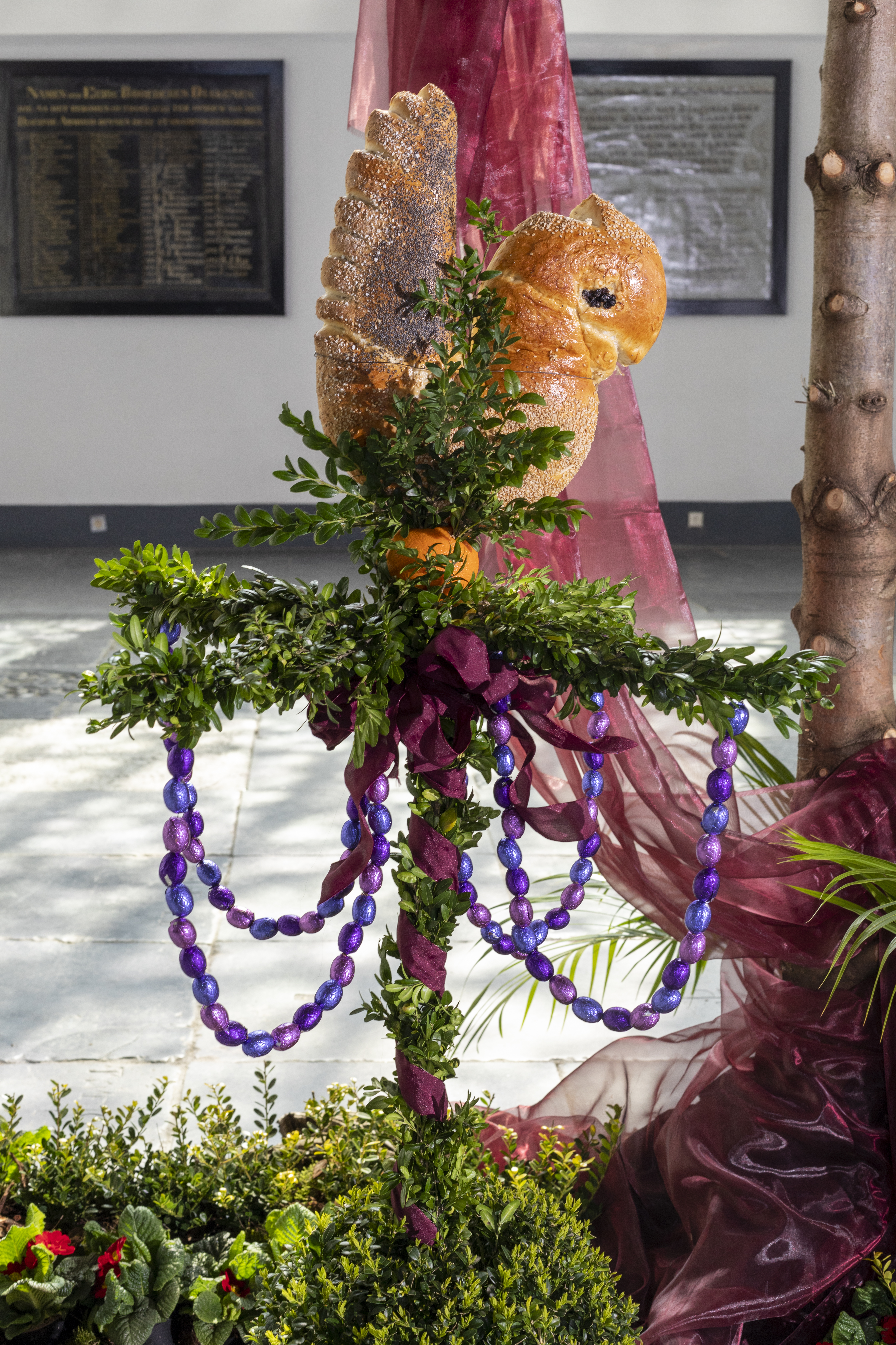 De palm (Howea foresteriana) is een teken van verering, maar ook van overwinning op de dood. In de palmpaasstok – een oude volkstraditie – zitten nog meer symbolen uit het lijdensverhaal. De stok heeft de vorm een kruis, versierd met tuinpalm (Buxus), met daarop een broodhaan. De haan die kraaide, toen Petrus drie keer had gezegd dat hij Jezus niet kende. Het zilverpapier waarin de eitjes zijn verpakt, herinnert aan het verradersloon (30 zilverlingen) dat Judas kreeg. De ketting met eitjes staat voor de gesel waarmee Jezus werd geslagen. En de sinaasappel voor de spons die op Golgotha werd gebruikt om Jezus te drinken te geven. De aangescherpte maatregelen gericht op samenkomsten maken het nog steeds mogelijk om individueel de Grote Kerk te bezoeken voor persoonlijke bezinning, bezieling, gebed en meditatie. Ook is er gelegenheid voor het aansteken van een lichtje in de stiltekapel. Om er strikt op toe te zien dat er niet meer dan 30 personen tegelijkertijd in de kerkruimte zijn, is alleen de ingang onder de toren geopend. Bij binnenkomst worden hygiënemaatregelen in acht genomen. We spreken elkaar erop aan als de fysieke afstand van 1.5 meter niet wordt gerespecteerd. Tijdens de Stille Week is de Grote Kerk ook open op Witte Donderdag en Goede Vrijdag van 19.00 – 20.00 uur. Op Stille Zaterdag van 20.30 -21.30 uur. Kerkdienst beluisteren (audio-opname) Youtube video's Protestantse Gemeente Naarden |